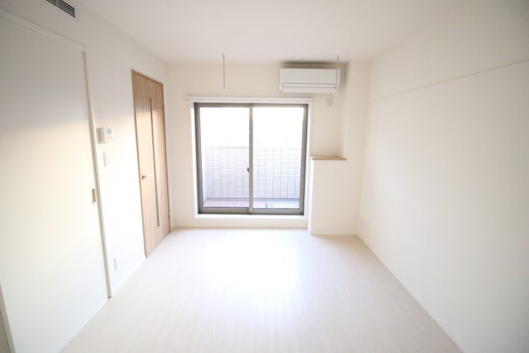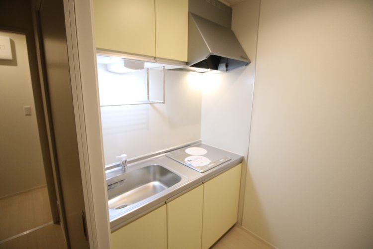 個人的に一番気に入ったポイントは間取り。キッチンや浴室が室内と直接繋がっています。通常の1Kの間取りだと、廊下にキッチンがある