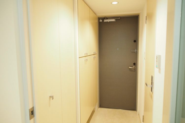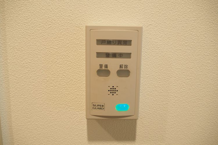 中まで入れるウォークインクローゼットや丸い鏡がかわいい独立洗面台、そんな素敵な設備とともにしっかりしたセキュリティが入っています。共用部のエントランスは二重扉+オートロック、セキュリティカメラは勿論のこと、何かあったときにALSOKに直通で連絡がいく非常用ボタンが室内に付いています。