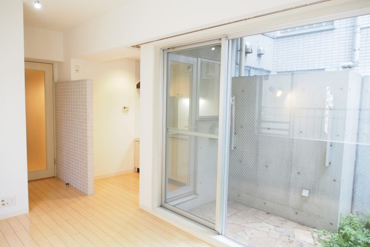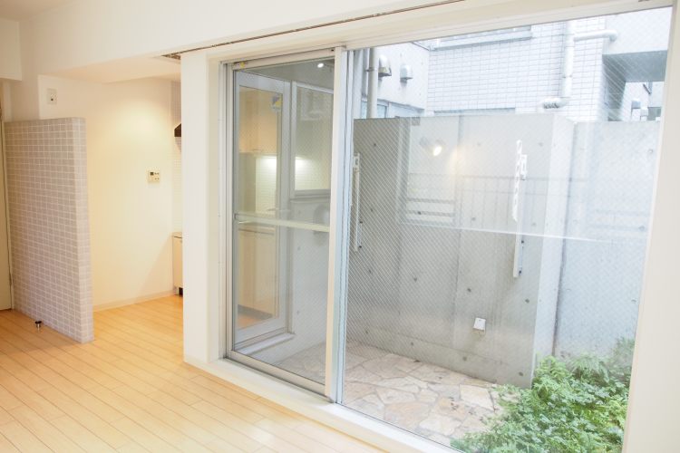 1階のお部屋ですが、通りに面していない人目が気にならない造りをしており、カーテンを開けっ放しにして外の景色を楽しむことも出来そうです。折角の壁一面窓なのに、窓前の建物や通りからの目線が気になって、結局はカーテンを閉めっぱなし・・。というお部屋も多いんですよね・・・。