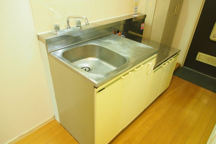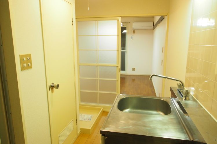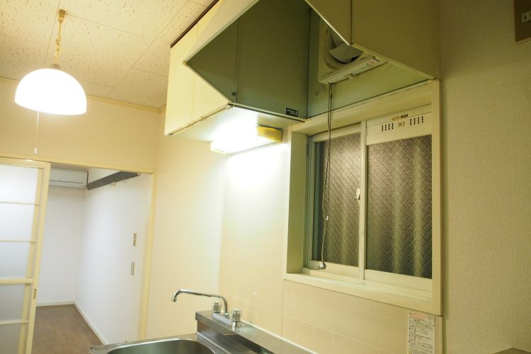 築年数が古めのお部屋ですが、バス・トイレ別、広々とした収納が付いたキッチンに、室内洗濯機置場が付いています。
