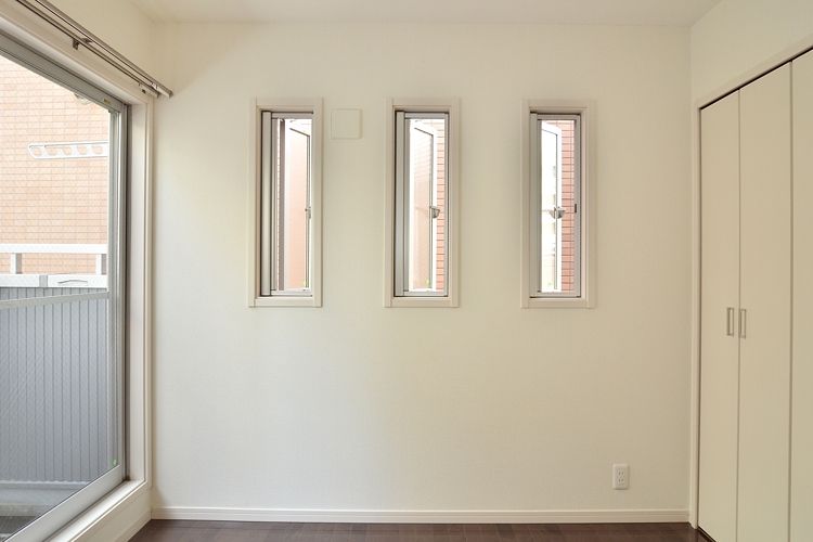 • 居室内右側にも窓が3つあり西向きです。通気・採光に適しています。
