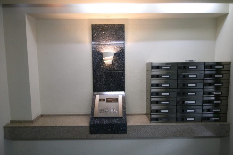 建物エントランスに不在時に荷物を預けておける宅配ボックスが付いています。 -