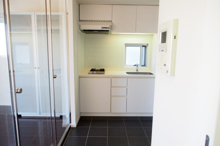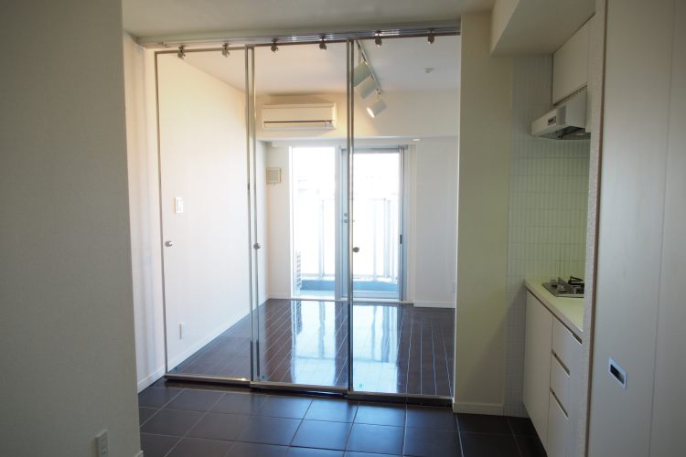 今回のお部屋は、バスタブからの眺めが素晴らしい、デザイナーズ物件。お部屋は1Kタイプですが、キッチンと室内をガラス扉で区切る事が出来、扉を開ければ広めの1Rとしても利用が出来ます。ダイニング・キッチンスペースは3.2畳、寝室は、5.5畳の広さがあります。