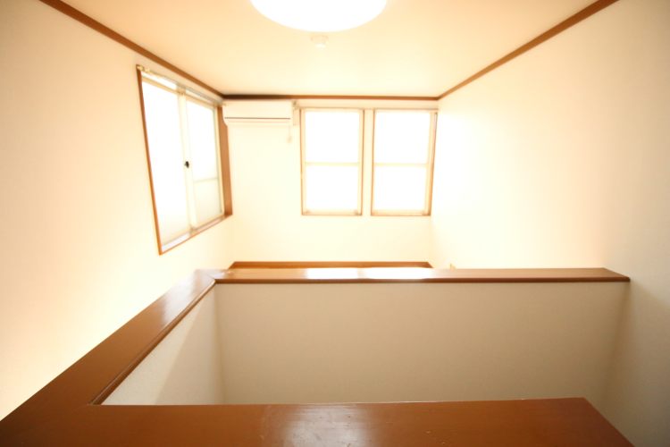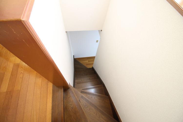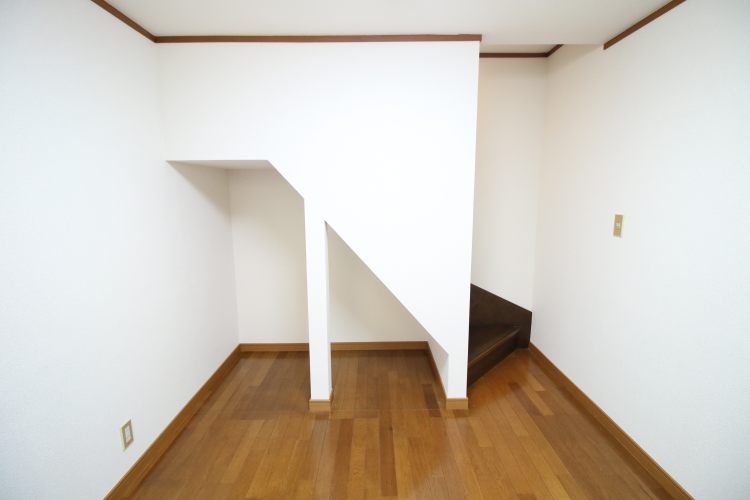 室内に入ると1階のお部屋ではあるものの、リビングは2面採光で日当り良好。階段が室内に付いており、下に降りていくと、もう1つのお部屋があらわれます。階段でしっかりと空間が区分けされていますので、リビング・寝室をそれぞれの機能に分けて使い分ける事が出来そうです。