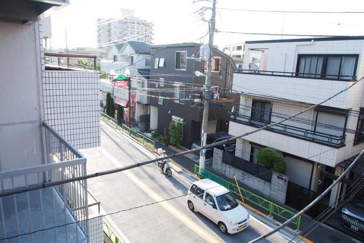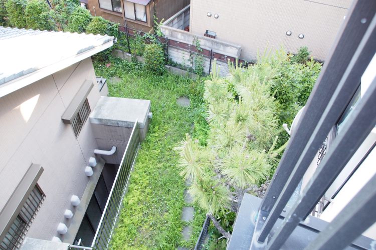 • バルコニーから左下を見た景色です。こちらは住宅街になる為、室内は静かです。