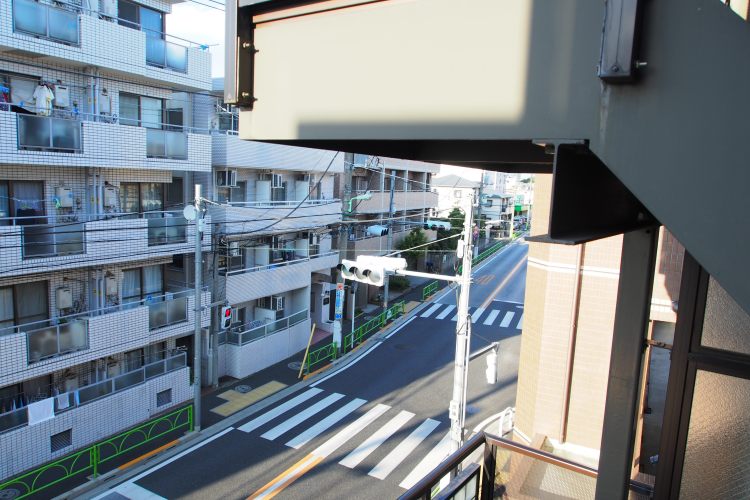 • エントランス側のバルコニーから左側を見た景色です。こちらは通りに面しています。