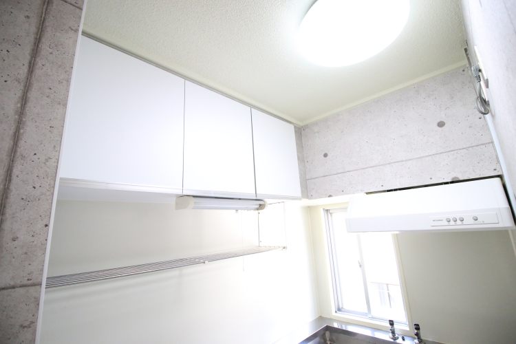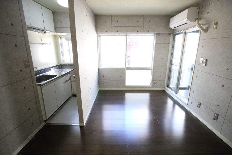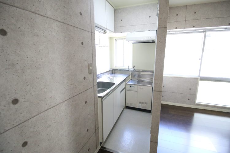 こちらのお部屋の特に特徴的なのがキッチン。L字型をしており、調理場が広めに設けられています。また、室内とは区分けされており、料理される方には重宝されそうな造りです。