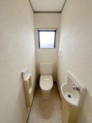 独立手洗い器を備え、来客にも、事務所利用にもふさわしい仕様。窓があるため、効率的な換気も叶います。
