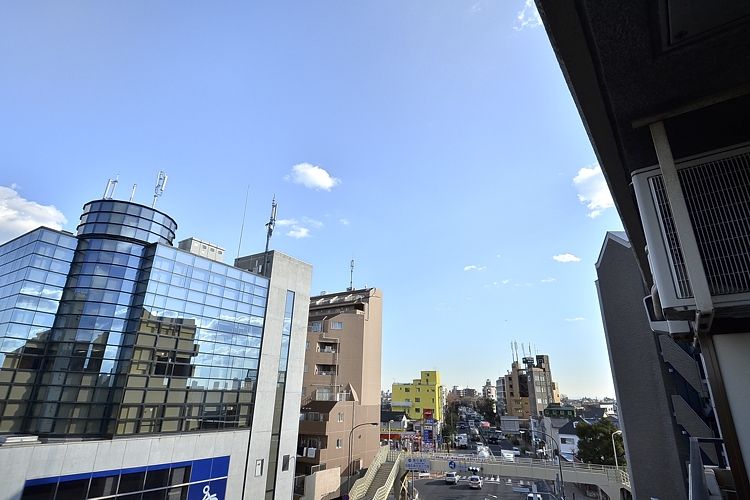 東急東横線「都立大学」駅から徒歩9分、東急目黒線「大岡山」駅から徒歩13分、東急目黒線「洗足」駅から徒歩16分の住宅街に位置しています。今回ご案内するお部屋は7階建ての5階部分。周辺に高い建物がない為、外廊下からの見晴らしは大変良く、天気の良い日は帰宅時にあかね色に染まった空を眺めることが出来ます。居室の窓は東側。こちらも眺望が良く、また前の建物が道路を挟んで建っているため、部屋に入り込む日差しがほとんど遮られません。