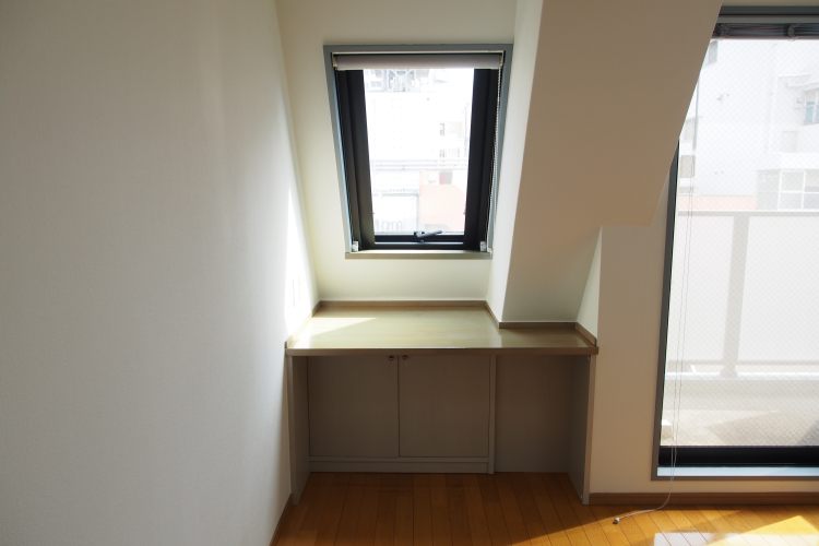 居室内は2つの窓が付いており、日当り良好。デスクが備え付けられており、デスク前には開閉可能な小窓が付いています。こちらで仕事や勉強等をすれば、集中出来そうです。