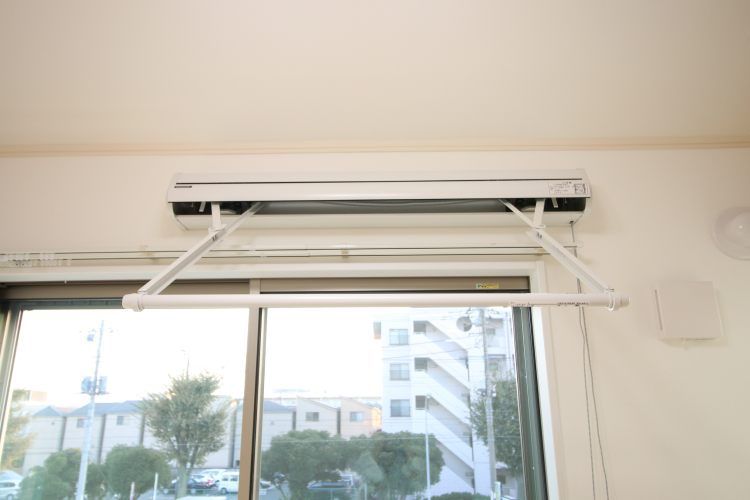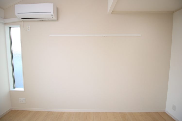 5. オシャレな絵を飾りたくなる、ピクチャーレールに室内に干す事が出来る、可動式室内物干竿が付いています。