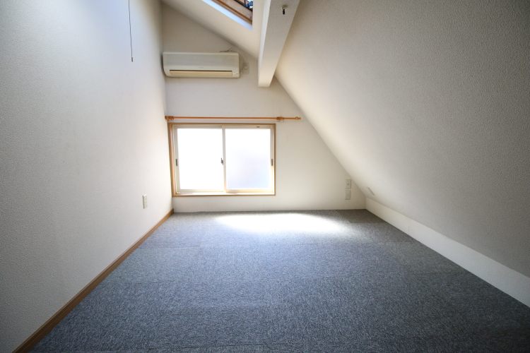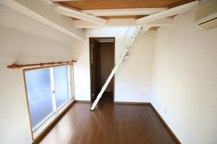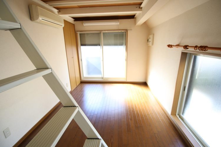居室内は南西向きと南東向きに窓が付いており、日当り良好、ロフトに向かうはしごを上り、そこにあらわれるお部屋にも2つの窓があり、1つは天窓です。何か物思いにふけりたいときに、このロフト内でゴロンと横になってみたくなります。