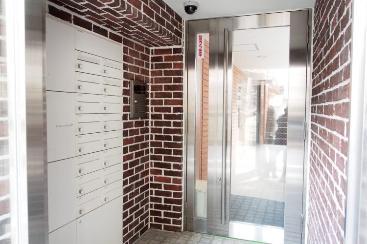 共用エントランスには不在時に荷物が届いたときに預けておける、宅配ボックスが付いています。 -