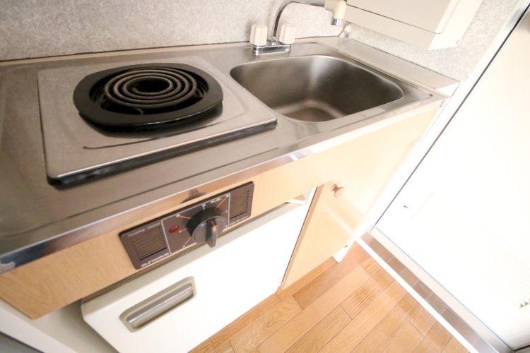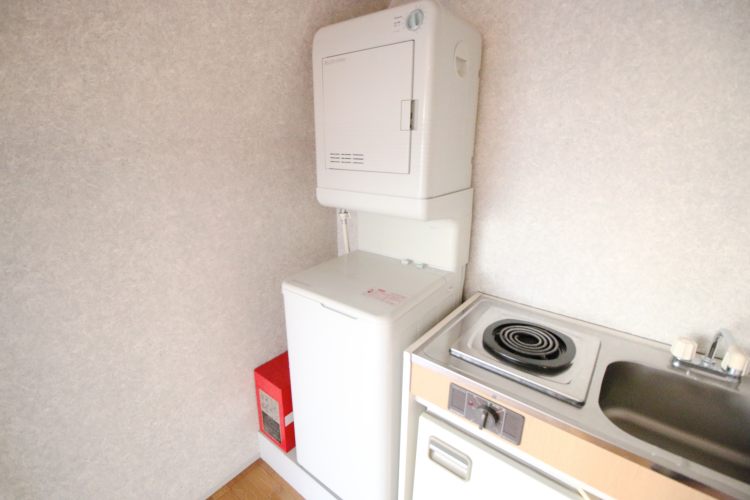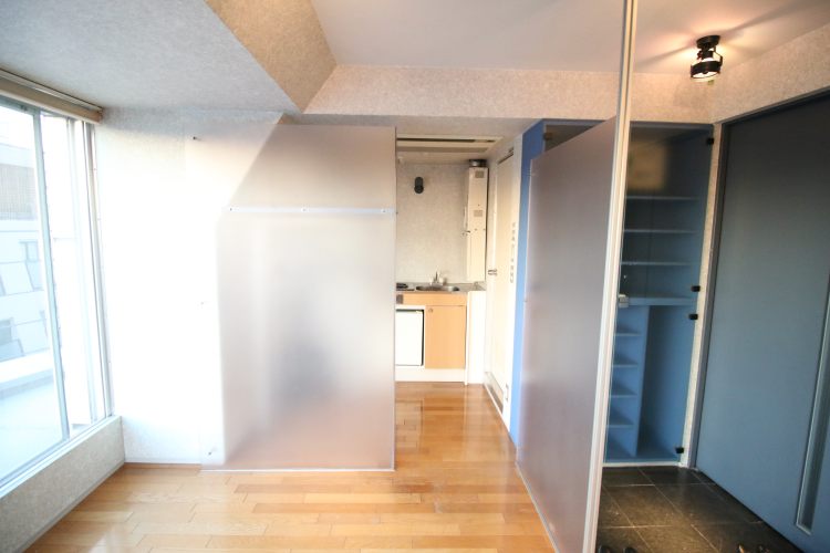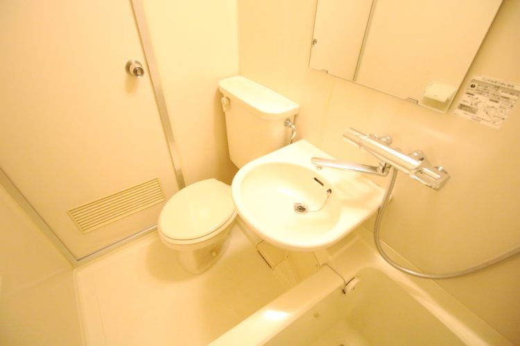 ただ、ネック点もあります。バス・トイレは同室、3点ユニットタイプです。キッチンは小さめ、また収納も荷物が多い方には足りないかもしれません。間取りも窓が大きい分、どこになにを配置しようか迷います。でも、お部屋は綺麗。3点ユニット内は、蛇口がサーモスタットに交換されており、貸主様が細かなところまで配慮くださる方というのが感じ取れます。