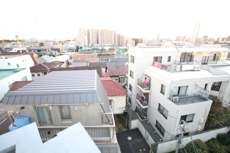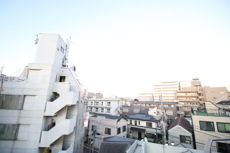 壁一面の窓の向こうには広々としたテラス・・・!テラスは、サマーベッドくらいなら余裕で広げられそうな広さがあります。女性の方限定のお部屋ですよ。三軒茶屋駅から徒歩7分の立地で、80,000円。こちらのお値段でこの眺めと日当りと、広々としたテラスが手に入ります。