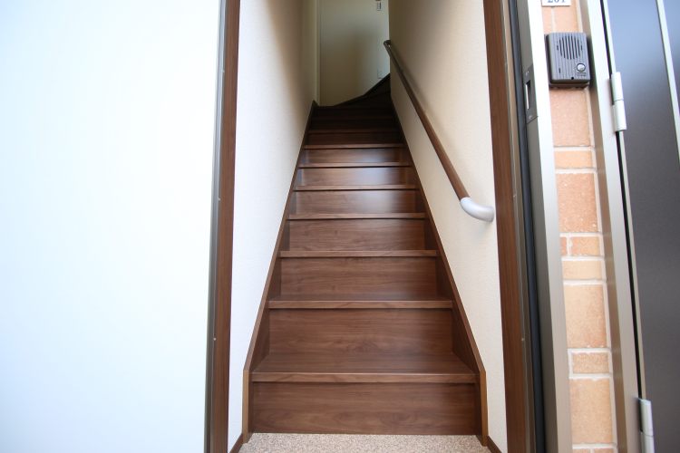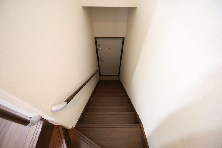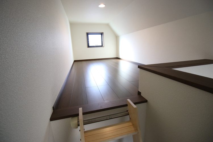 先ず、1階にエントランスがあり、階段を上っていくと2階はリビング、その上に更に階段があり、3階は寝室として用いる事が出来るロフトが設置されています。