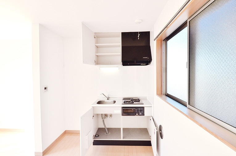 一人暮らし向けの物件には珍しく脱衣所が広めのタイプ。木造のアパートメントタイプですが、設備が充実しています。