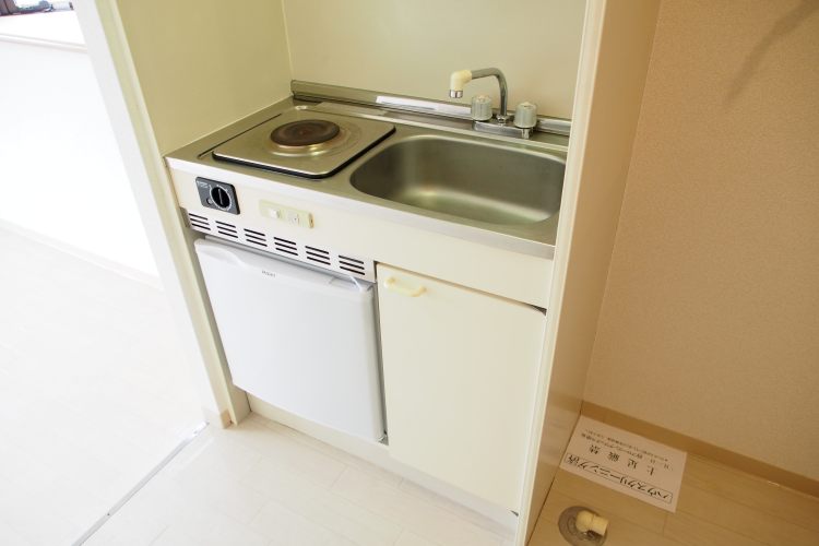 設備は賃料相応です。バストイレ同室、キッチンはこぢんまりとしています。また、クローゼッがありませんので、こちらのお部屋にあったクローゼットをご用意ください。